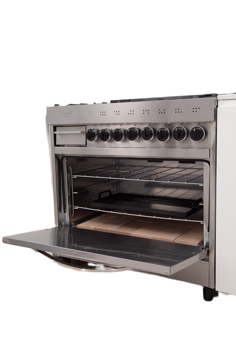 SEGURIDAD: válvulas de seguridad en horno y hornallas con termocupla que con la ausencia de llama corta el paso del gas.