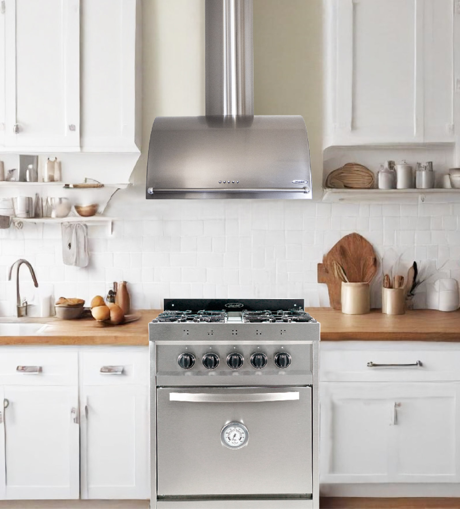 Horno – Capacidad: 50 cm = 65 lts, 55 cm = 75 lts, 60 cm = 83 lts. Horno completamente de acero, con ladrillos refractarios.