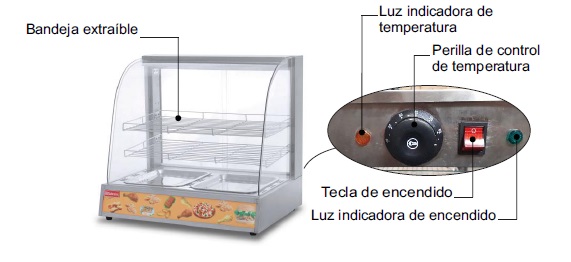 Mantenedor comercial FW-200 ideal para mantener alimentos calientes y listos para servir. Cuenta con control de temperatura regulable de 30 a 80 °C, bandejas extraíbles y luces indicadoras de funcionamiento. Apto para comercios gastronómicos, eventos y mostradores.